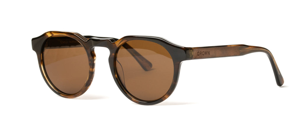 Handcrafted from plant based and biodegradable Ecotate™ with Californian walnut burl wood accents. The stylishly curved Apollo frame also features a keyhole bridge and comes in several base colours and lens options.