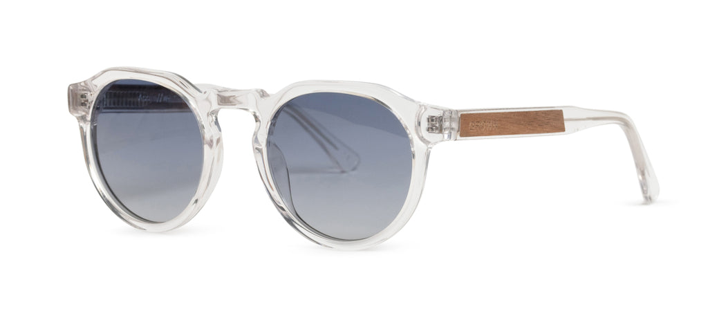 Handcrafted from plant based and biodegradable Ecotate™ with Californian walnut wood accents. The stylishly curved Apollo frame also features a keyhole bridge and comes in several base colours and lens options.