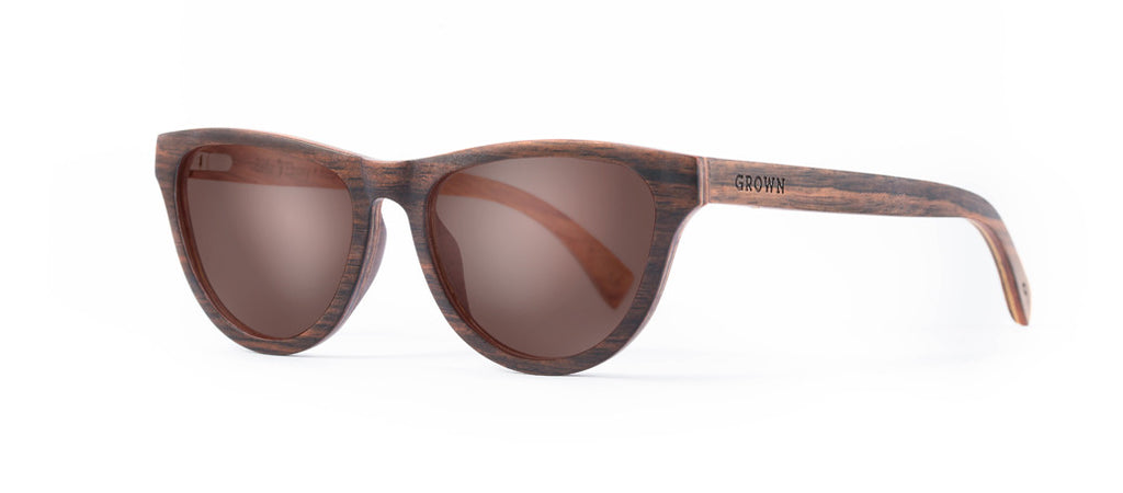 A 50’s inspired design, this beautiful cat eye shaped frame comes in dual tones of dark ebony and redwood. The delicate upsweep gives it an unmistakable vintage feel with a bohemian edge. Whether you’re off to the office, having cocktails with the girls or pounding the green carpet in your festival boots, these timber sunglasses have got you covered.
