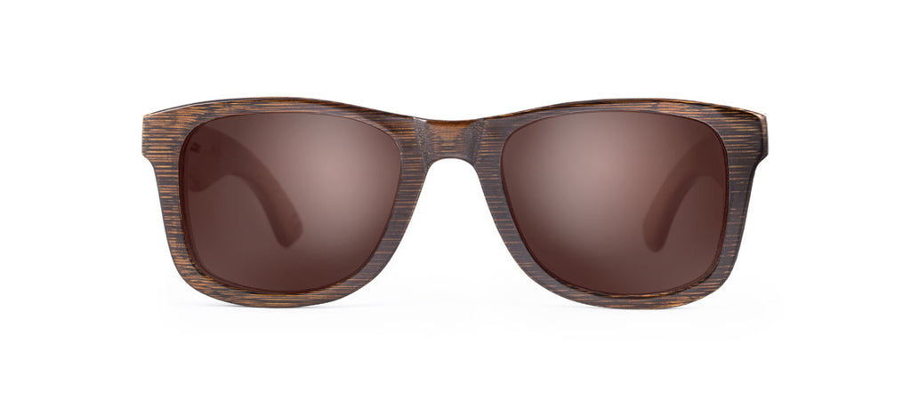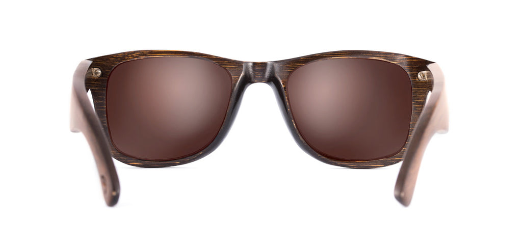 A classic wayfarer shape, our Flagship 'Kickers' style are handcrafted from durable and lightweight bamboo. Featuring distinctive wedge cut arms, an elevated bridge and solid brown polarised lenses. These stunning Bamboo sunglasses are also a big hit amongst ocean dwellers thanks to the buoyancy of the light wood……That’s right, they float!  With this beautiful material naturally varying in colour and grain, each pair is completely unique.